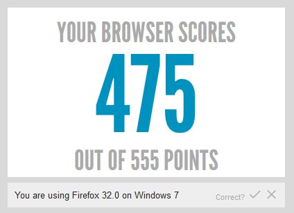 今回もトップはGoogle Chrome。 前回6月時点の計測時のバージョンが 35、今回は37に。 スコアは「507」から「512」へ。